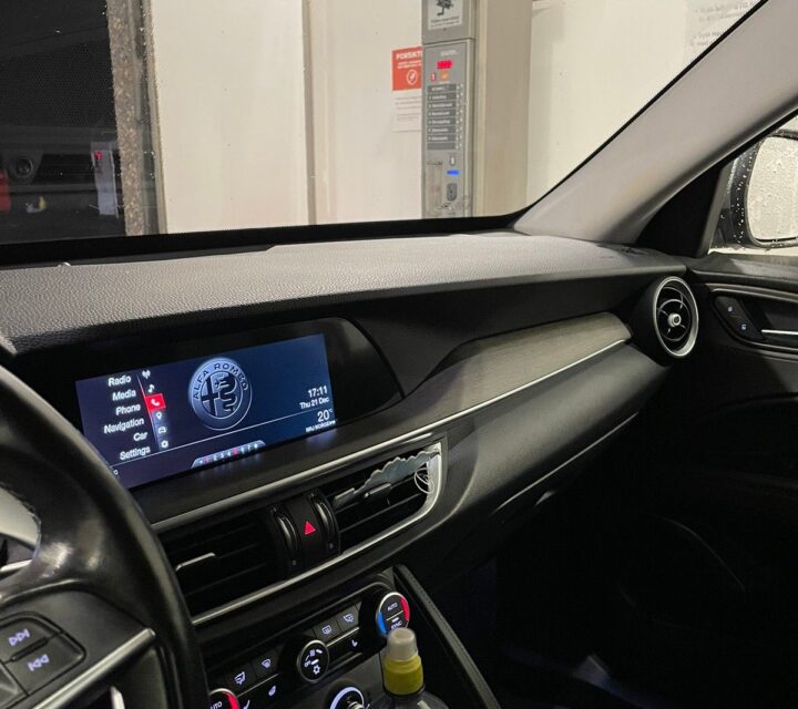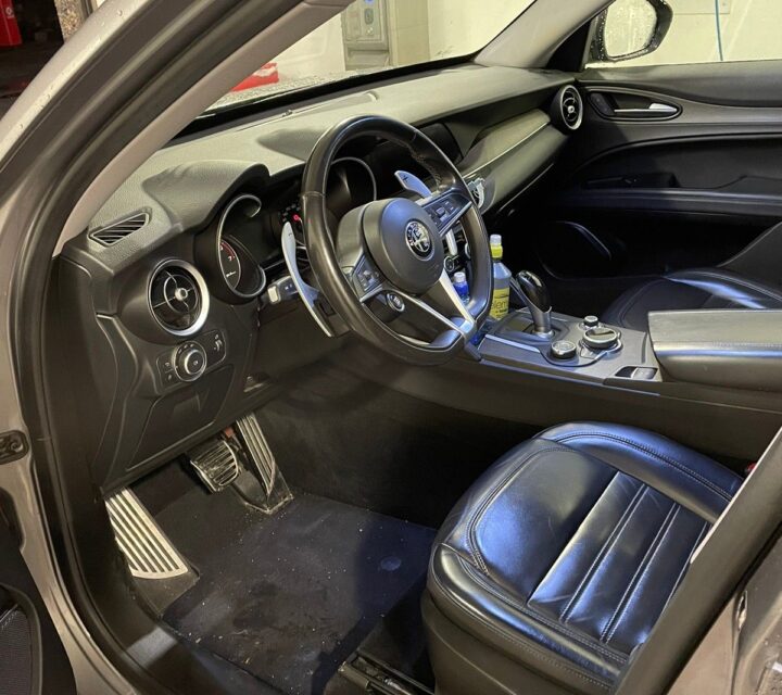 Alfa Romeo Stelvio është i njohur për dizajnin e tij elegant dhe brendësinë luksoze.